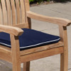 Crafted from the highest quality Indonesian Teak, known for its durability and strength, this dining set will last for years to come. The beautiful natural finish of the wood is accentuated by the Navy or Canvas colored Sunbrella seat cushions, which not only add a pop of color but also provide superior comfort.
